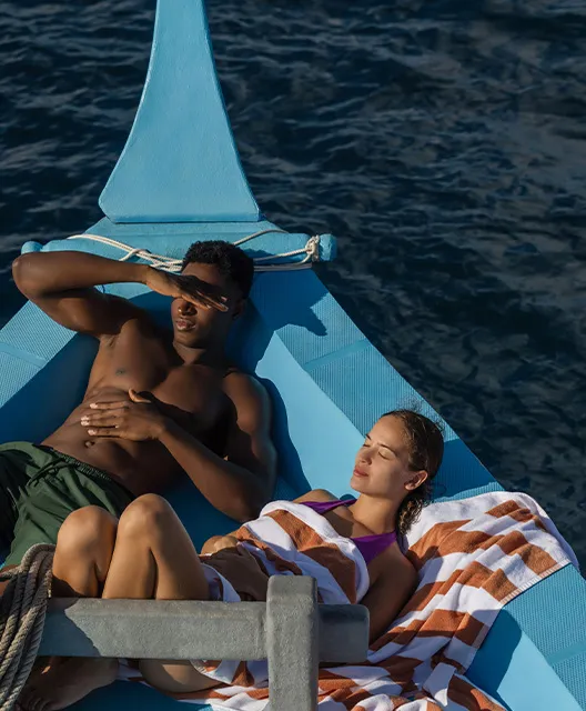 On the pristine white sands of the lagoon, you are steps away from the turquoise reef that is perfect for snorkeling.